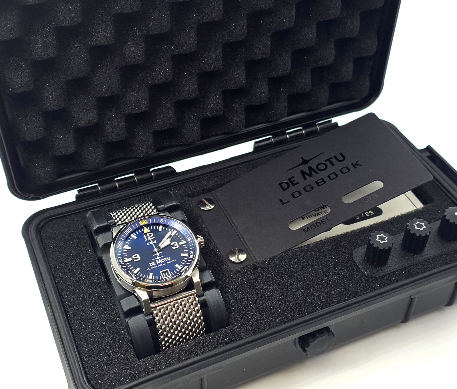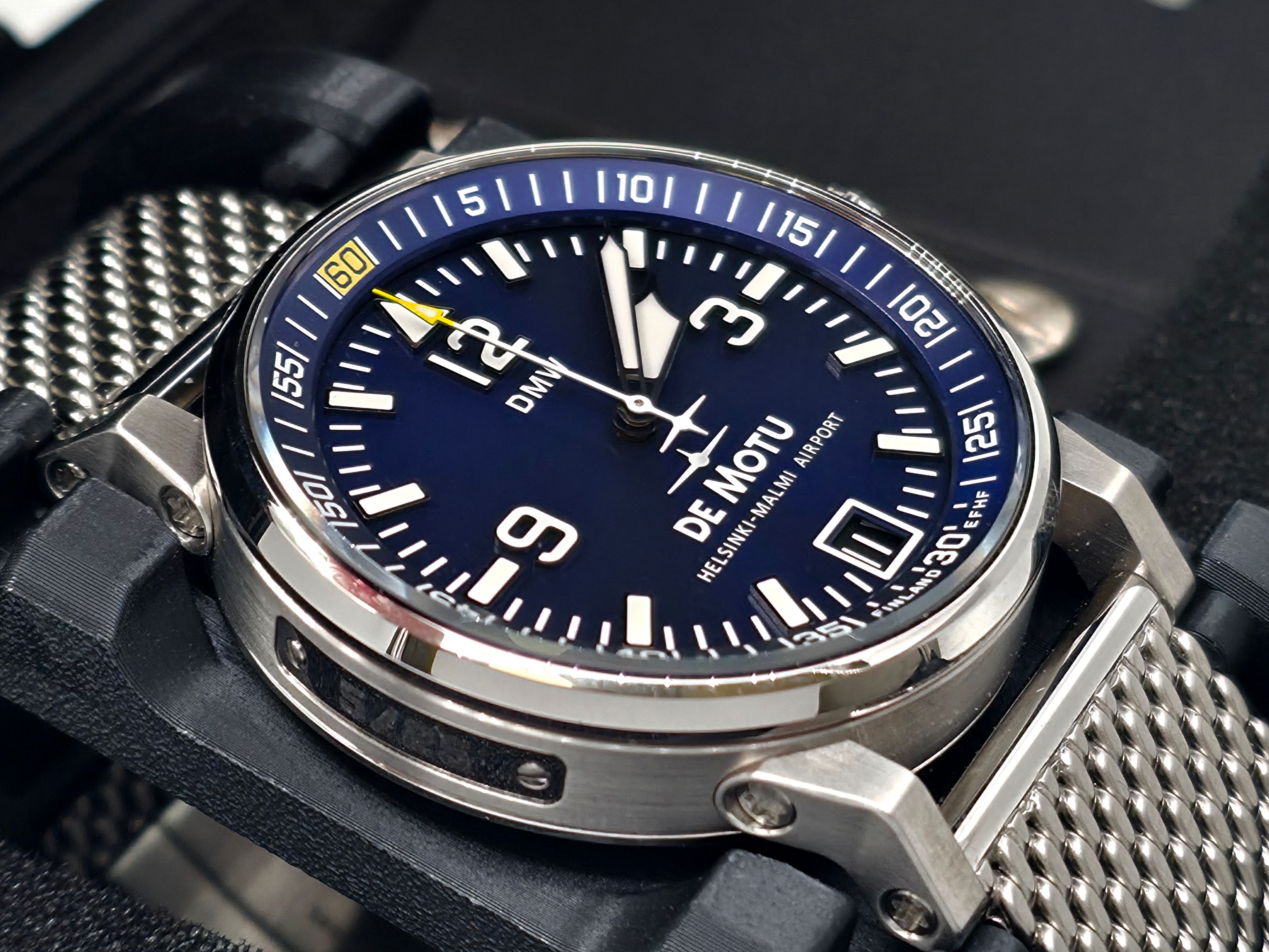 De Motun DMW Midnight Blue Private Edition -erikoismallin, joka on valmistettu rajoitettuna 25 kappaleen numeroituna sarjana. Laite on hankittu uutena marraskuussa 2025, ja sille on valmistajan 24 kuukauden takuu. Kello on erinomaisessa kunnossa. Ovh. 3380 euroa.