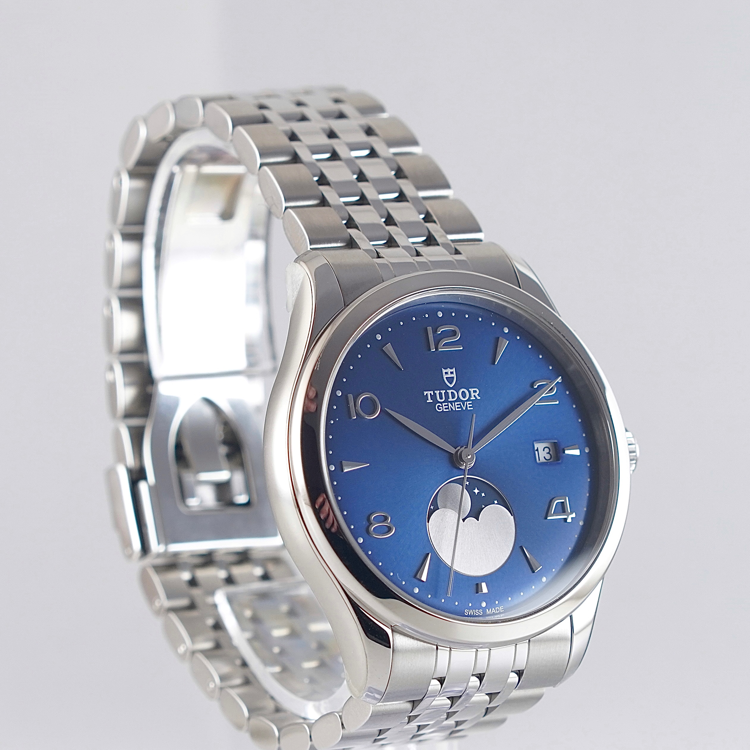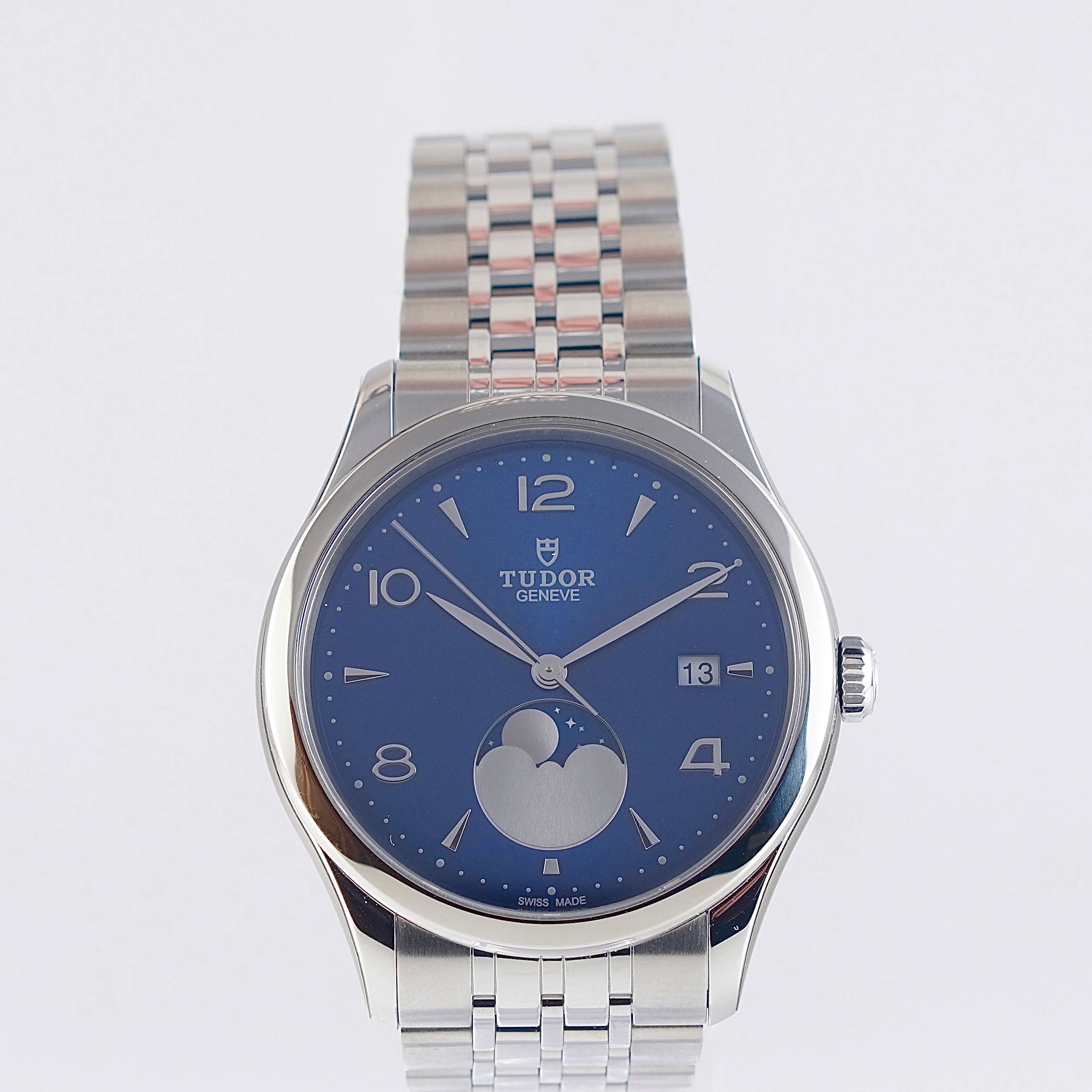 KÄYTTÄMÄTÖN ja harvemmin tarjolla oleva Tudor 1926 Luna. Fullset, jonka takuukortti päivätty 12/2025. Valmistajan takuu voimassa 12/2030 asti. Alkuperäinen teräsranneke täysmittaisena. Kellosta löytyy päivyri, safiirilasike sekä kuunkiertokomplikaatio. Syvänsininen taulu sekä hienostunut viimeistely viisareissa tekevät tästä todella näyttävän ja elegantin käyttökellon, joka istuu myös juhlavampaankin asusteeseen.