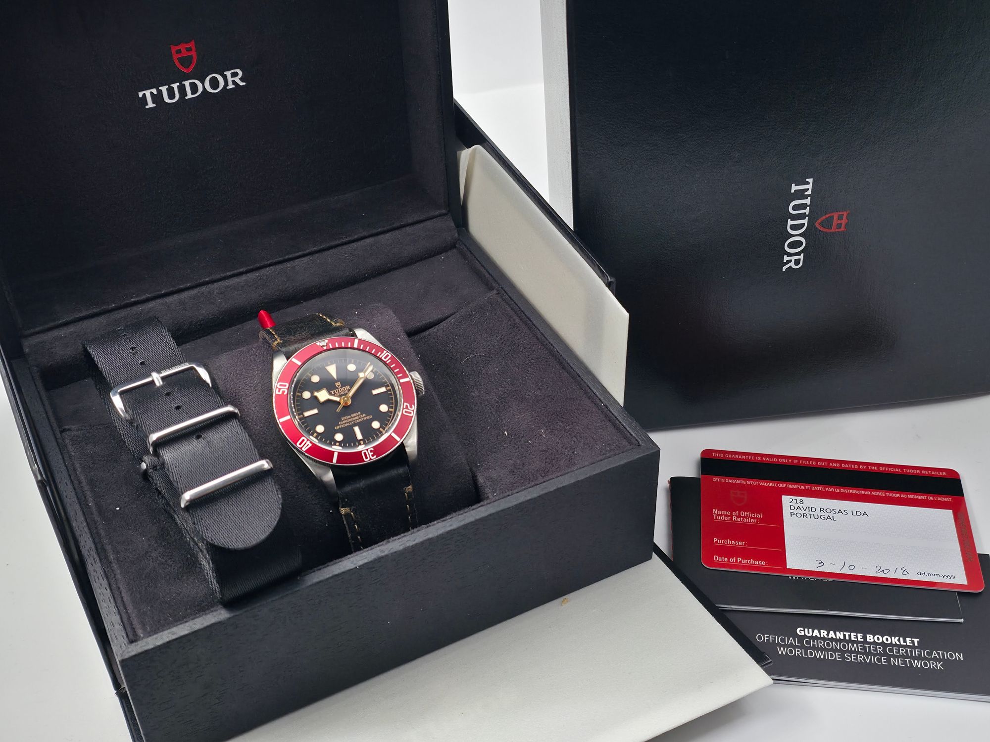 Tudor Black Bay 41mm Diver. Tämä sukelluskello tarjoaa erinomaista vastinetta rahalle. Kellon sisällä sykki Tudorin oma in-house koneisto, jonka käyntivara on 70 tuntia. Vesitiiviys on 200 metriä ja lumer on vahva. Fullset 10/2018. Kellon käynti on moitteeton ja se on erittäin siistissä kunnossa.