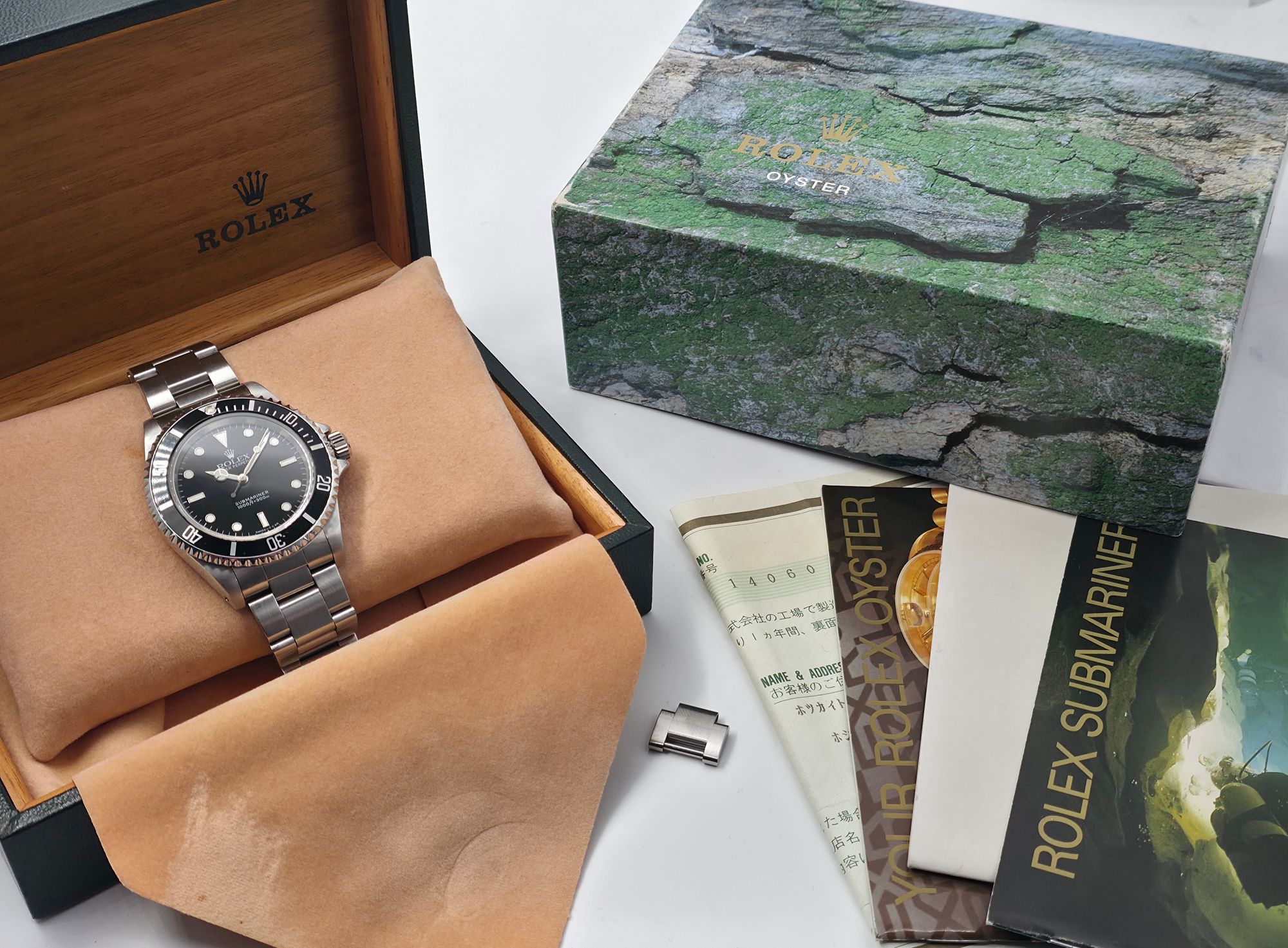 Siistissä kunnossa oleva "No Date" Submariner. Hieno setti, alkuperäisillä bokseilla ja papereilla 10/1998. Käynti erinomainen. Koneiston kunto ja tiiveys testattu ja todettu erinomaiseksi 06/2024 (dokumentti). Tästä ikoninen malli, joka on erittäin mukava ja tyylikäs ranteessa kuin ranteessa!