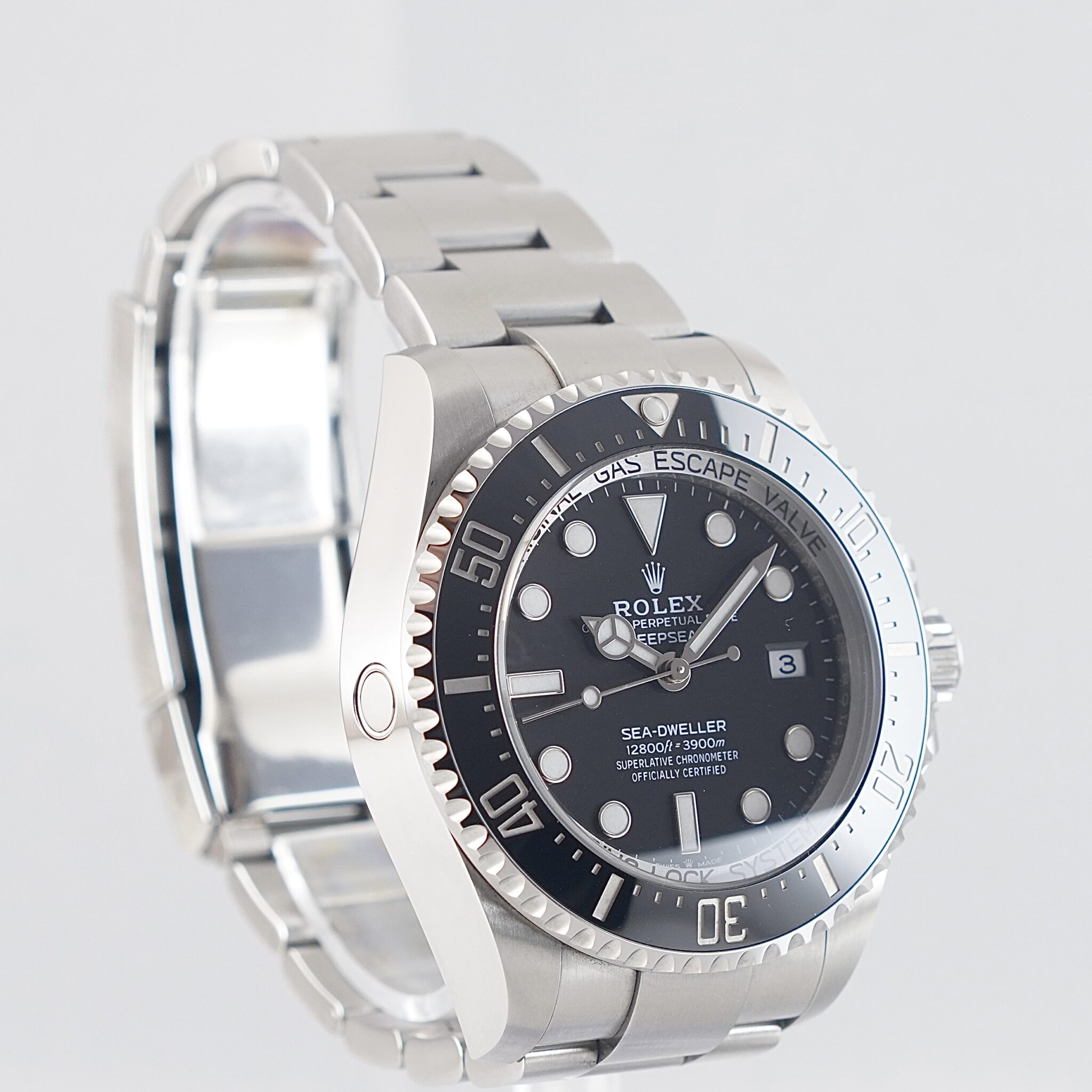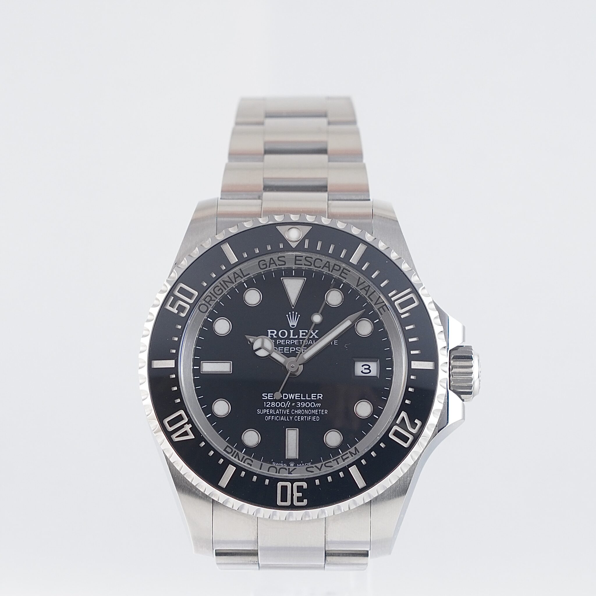 Mint-kuntoinen Rolex Deepsea Sea-Dweller fullsettinä. Takuukortti leimattu 10/2023, valmistajan takuu voimassa 10/2027 asti. Kellon mukana kaikki mitä uutenakin. Safiirilasike, keraaminen kehä ja alkuperäinen Oyster-ranneke. Lukossa liukuva pikasäätö. Tällä kahlaa rantavedessä tai vähän syvemmälläkin vesistössä sillä vesitiiveyttä povataan jopa n. 3900m asti.