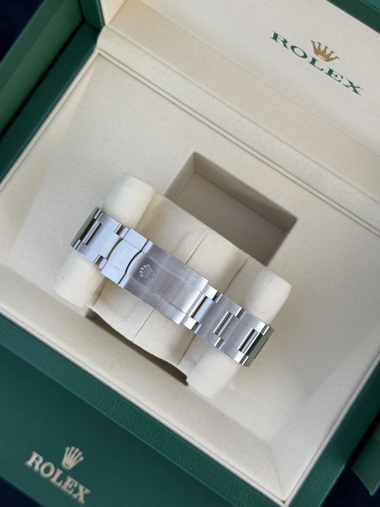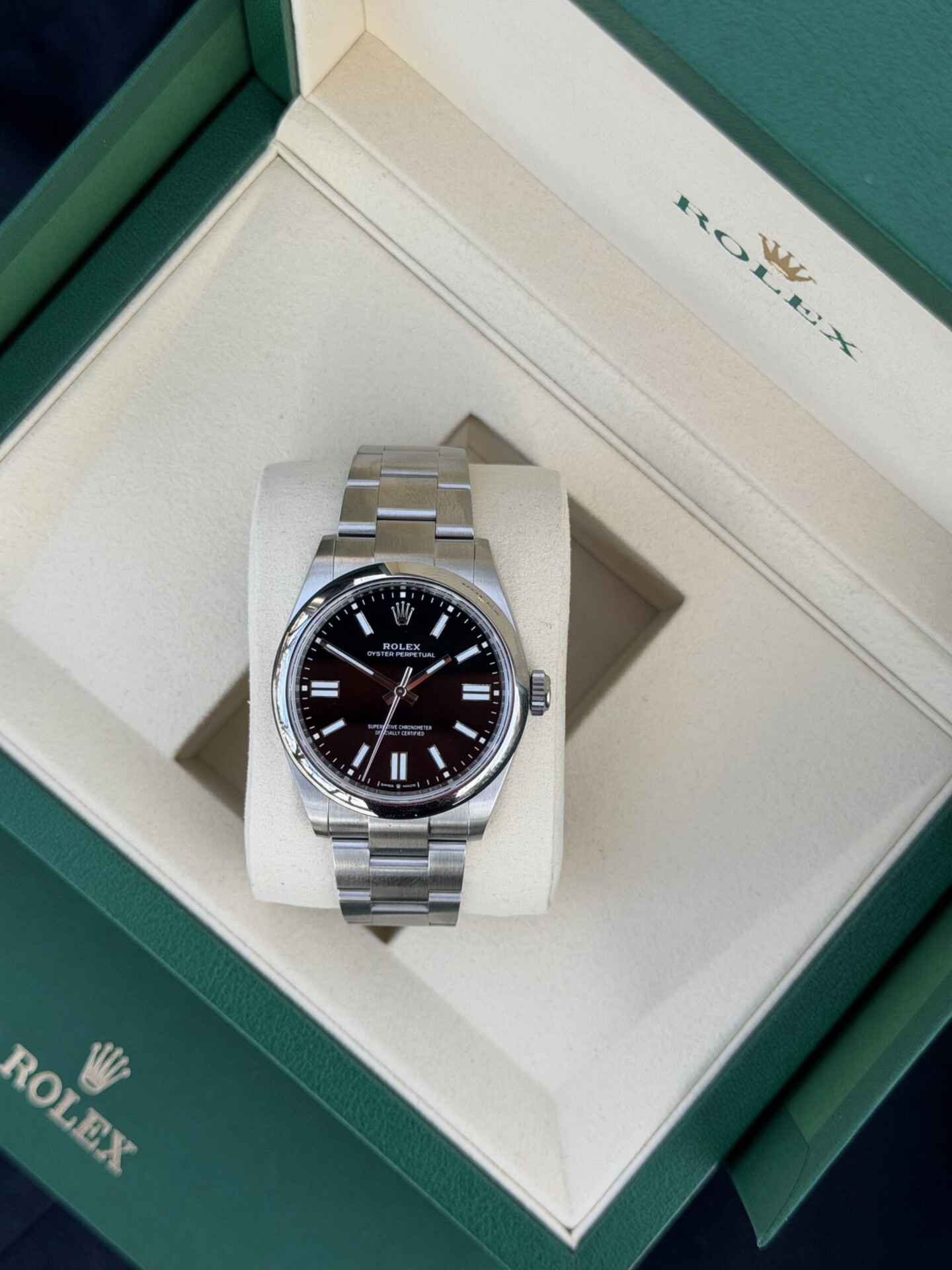 Käyttämätön Rolex Oyster Perpetual upealla mustalla taululla. Klassinen ja ajaton malli, jossa yhdistyvät Rolexin tunnusomainen muotoilu, korkea viimeistelytaso sekä erinomainen käyttömukavuus. Musta taulu tekee kellosta selkeän, tyylikkään ja helposti yhdistettävän erilaisiin tilanteisiin.