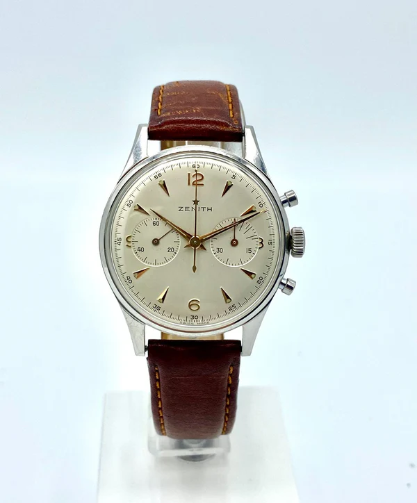 Hienokuntoinen Zenith Chronograph 9535191. Sarjanumeron mukainen valmistusvuosi 1960. Zenithin cal. 136D mekaaninen manuaalivetoinen koneisto. Alkuperäinen kellotaulu ja viisarit. Tämä Zenith on juuri täydellisesti kunnostettu. Kuorta ei ole hiottu/kiillotettu huollon yhteydessä. Käyntitakuu 1 vuosi.